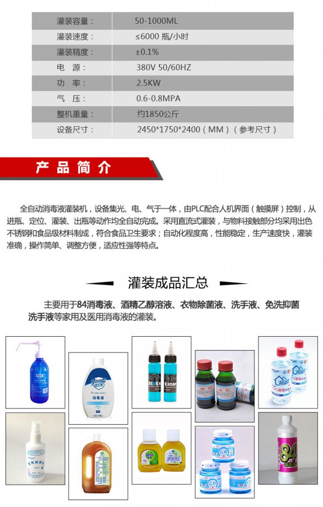 消毒液灌裝機(jī)結(jié)構(gòu)特點(diǎn)及材料使用: